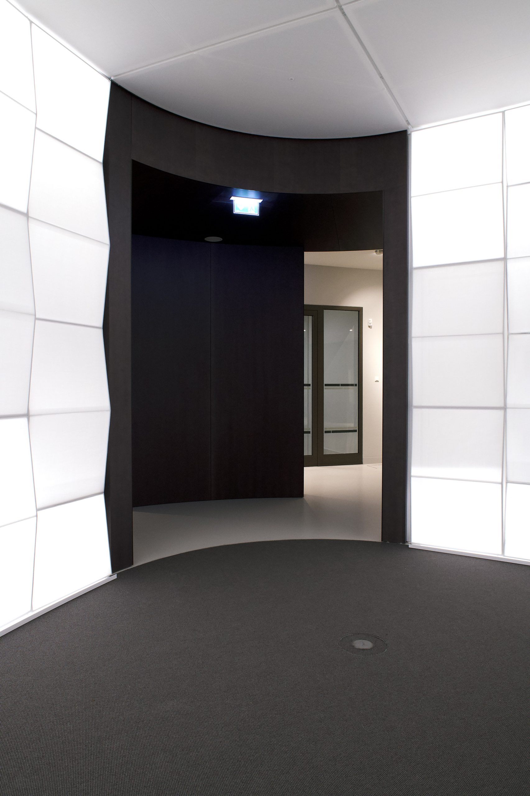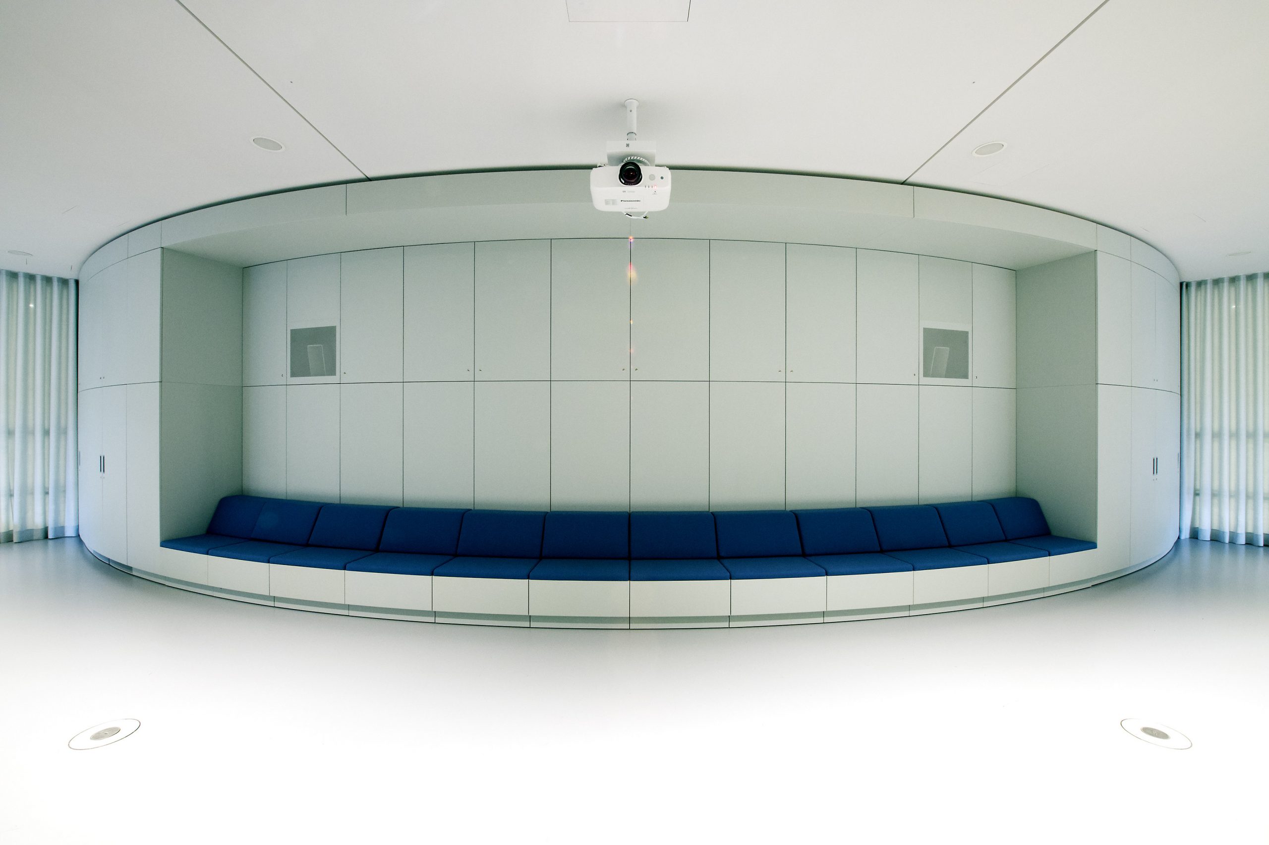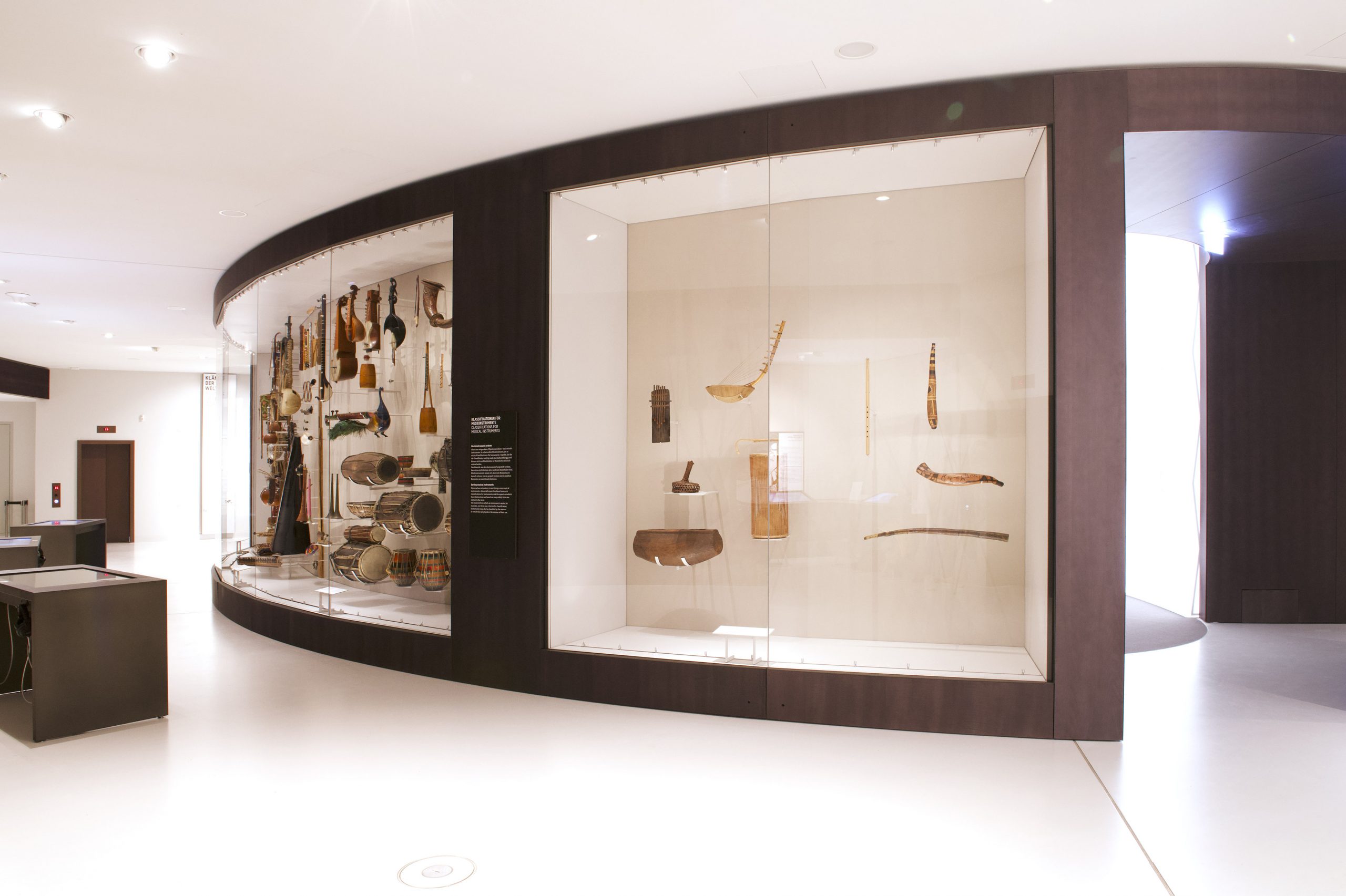 In einem Museum zählt jedes Detail – für das Besuchererlebnis und für die Präsentation der Exponate. Die ellipsenförmige Grundstruktur des Objektes verlangte höchste Präzision in der Umsetzung: gebogene Formen, perfekte Symmetrie, millimetergenaue Übergänge. Alle Fronten wurden aus mehreren Schichten in eine fließende Bogenform gebracht. Dieses Projekt beweist, dass auch Brandschutz und Technik sich elegant integrieren lassen. Jedes eingesetzte Material erfüllt eine Aufgabe, die visuell und funktional wirkt. Gebeiztes Holz, schwarz eloxiertes Metall, schallabsorbierende Flächen, elegant integrierte Stahl-Vitrinen und fein abgestimmte Lichtführung schaffen Klarheit und geben Sicherheit.