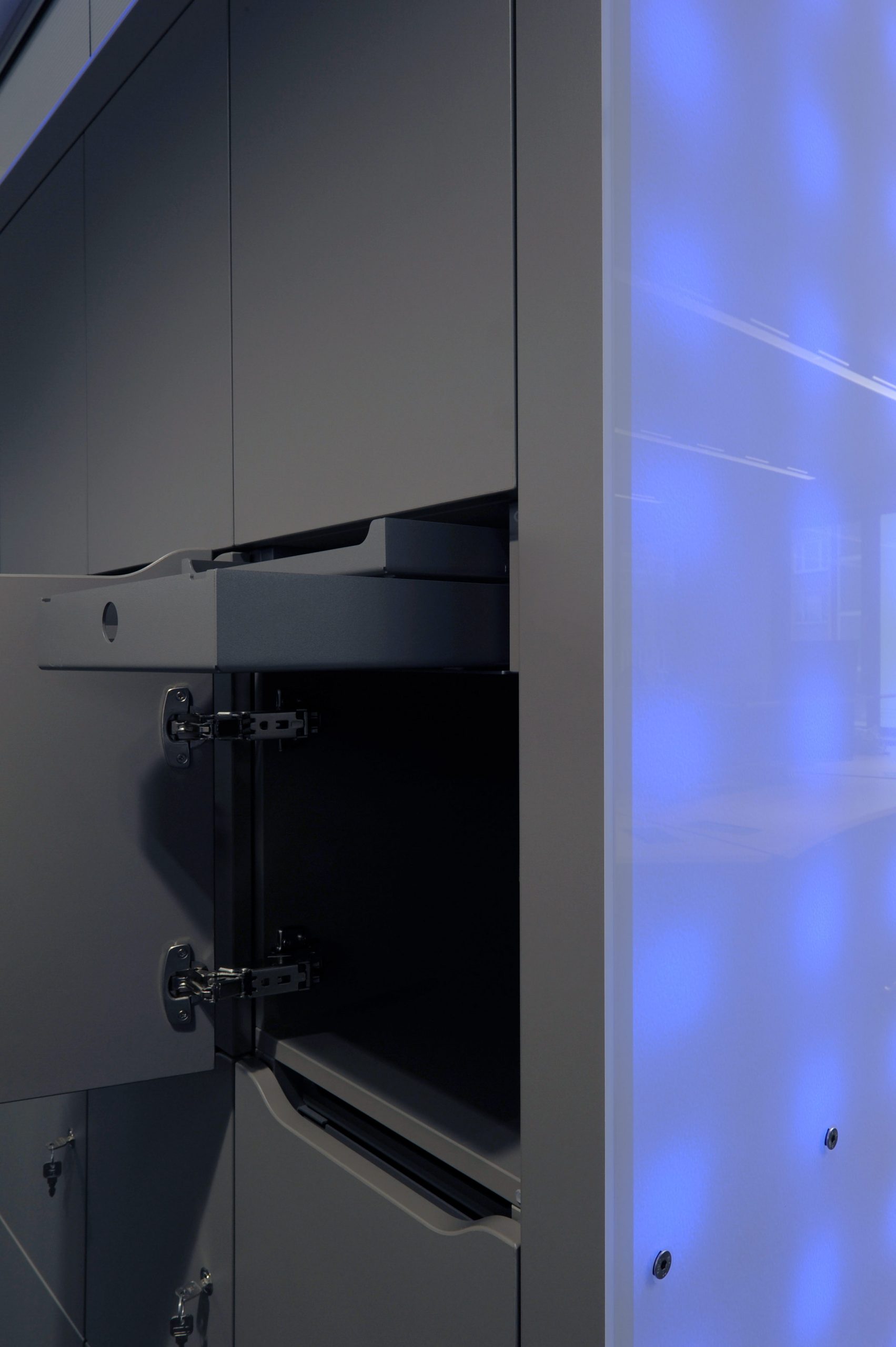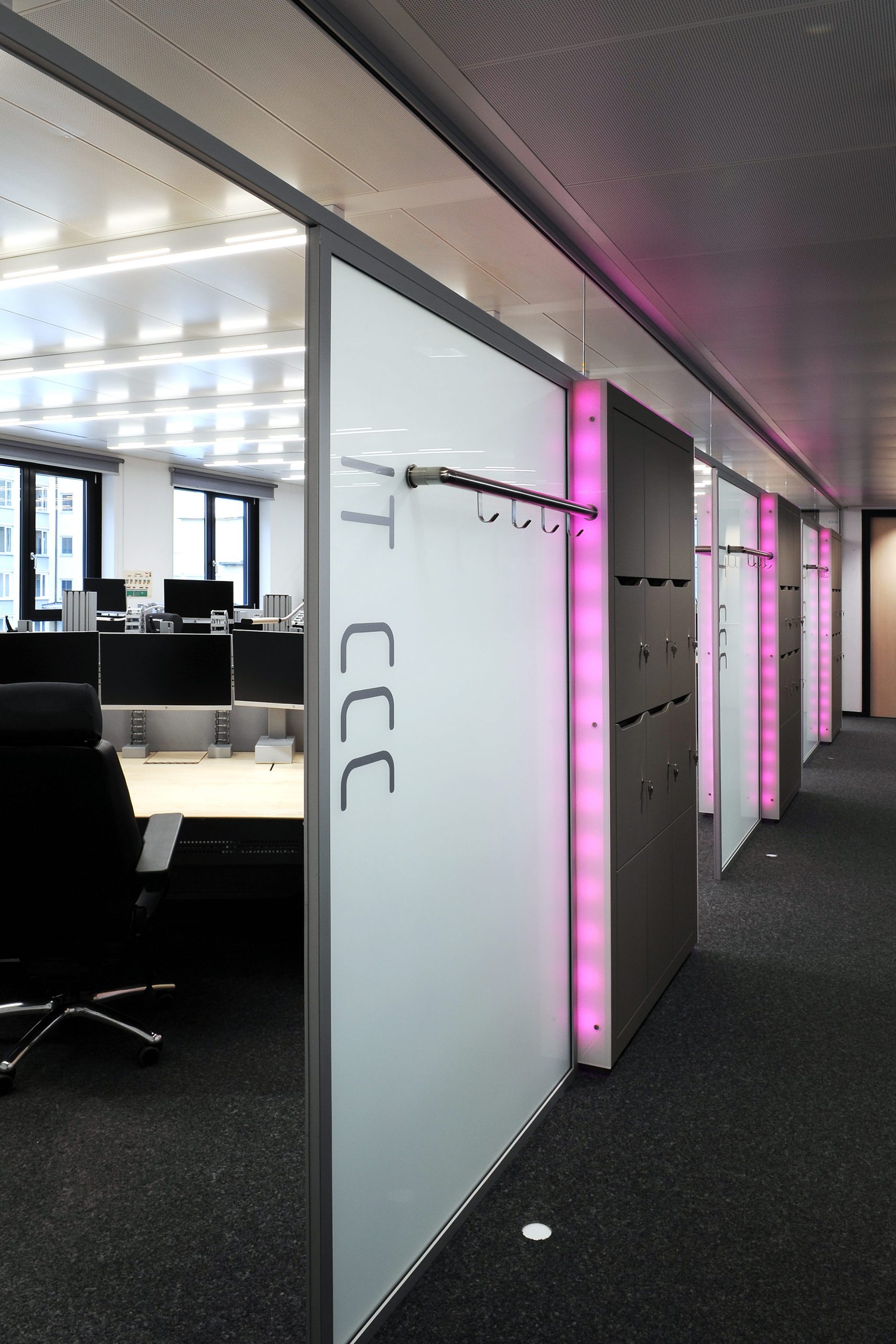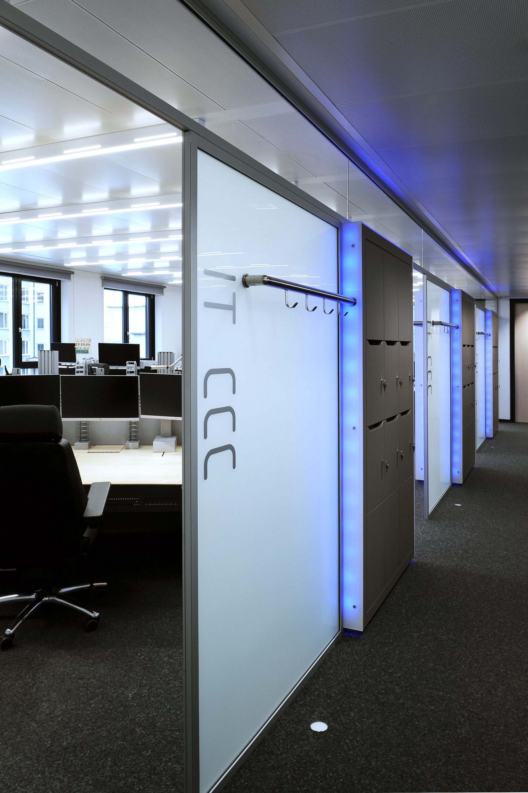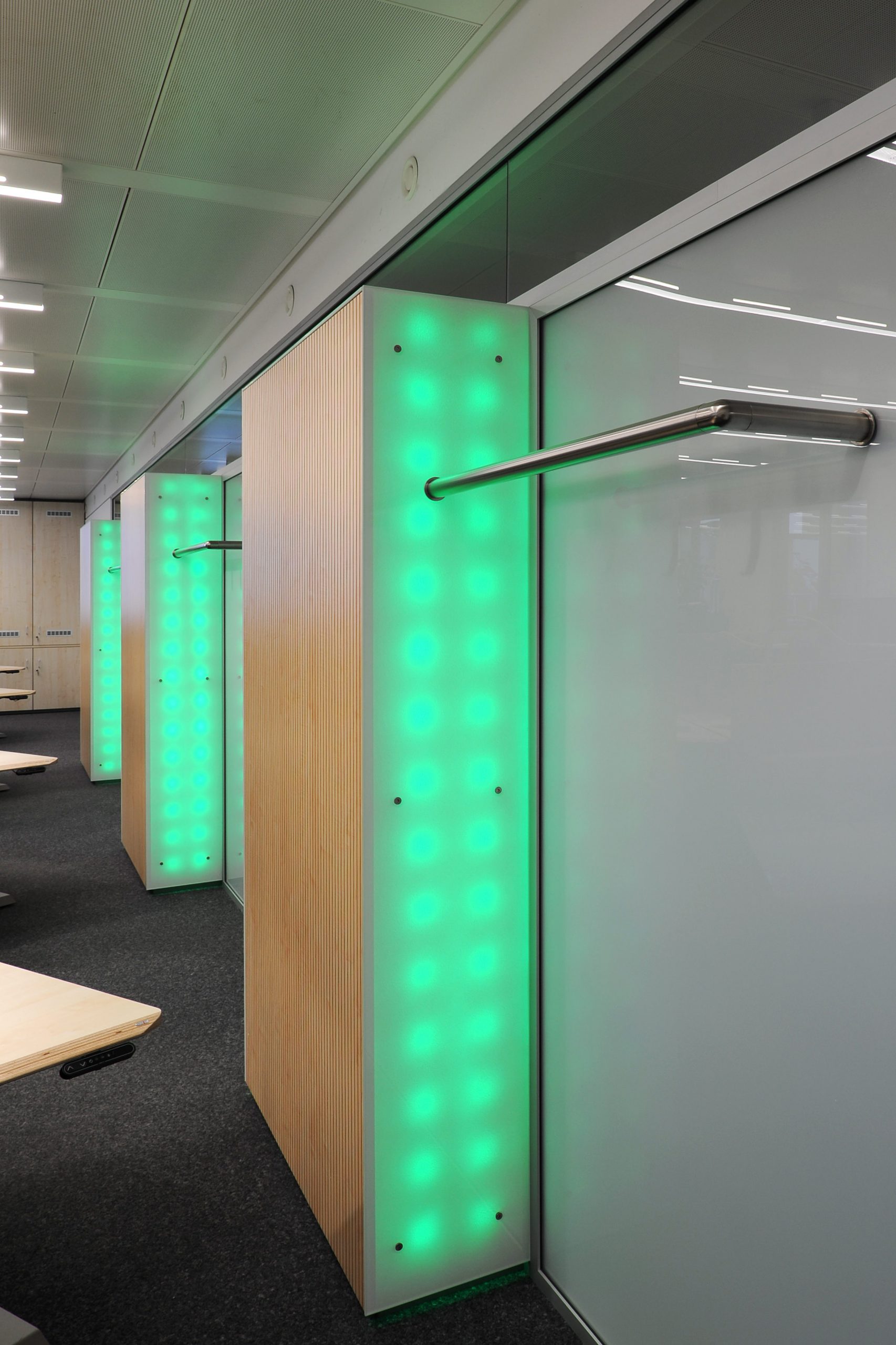 In einer IT-Leitwarte zählt jede Sekunde. Dieser Raum ist auf Reaktionsfähigkeit programmiert – technisch, funktional und atmosphärisch. 24/7 einsetzbare Leitstellentische, höhenverstellbar und ergonomisch, machen schnelles Handeln zum Standard. Monitorwände, Trennwände mit schaltbarem Glas, steuerbare Lichtsysteme und präzise Akustiklösungen schaffen visuell wie auditiv Klarheit. Alles ist durchdacht: von der programmierbaren Lichtsteuerung bis zu den personalisierten Wertfächern, in denen Mitarbeitende ihr Equipment sofort griffbereit haben. Sämtliche integrierte Funktionen sorgen zu jeder Zeit für konzentriertes und angenehmes Arbeiten.