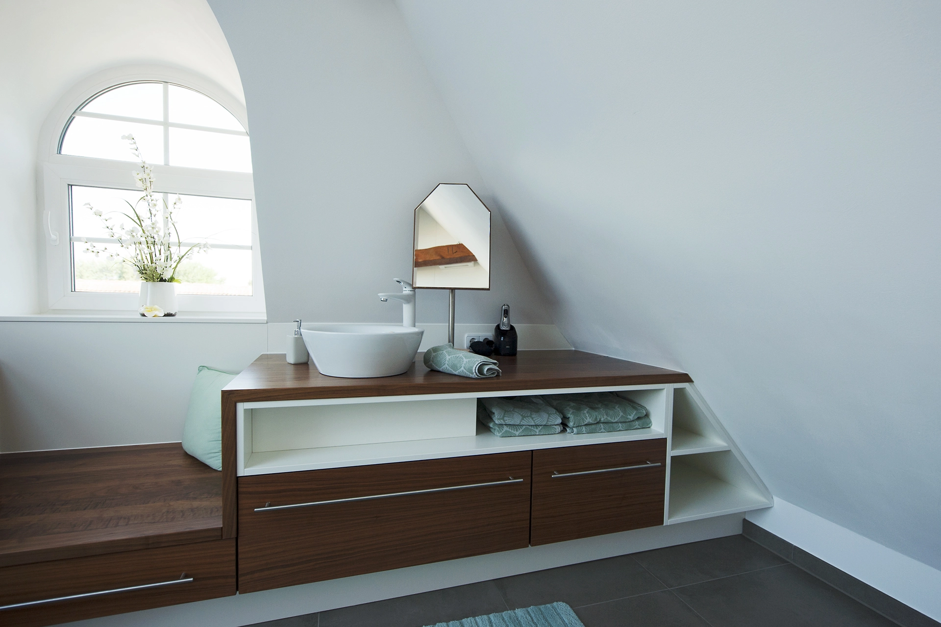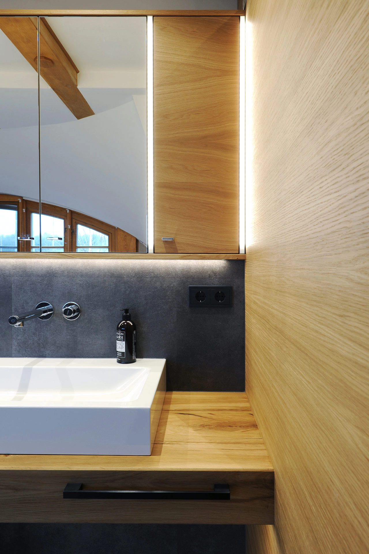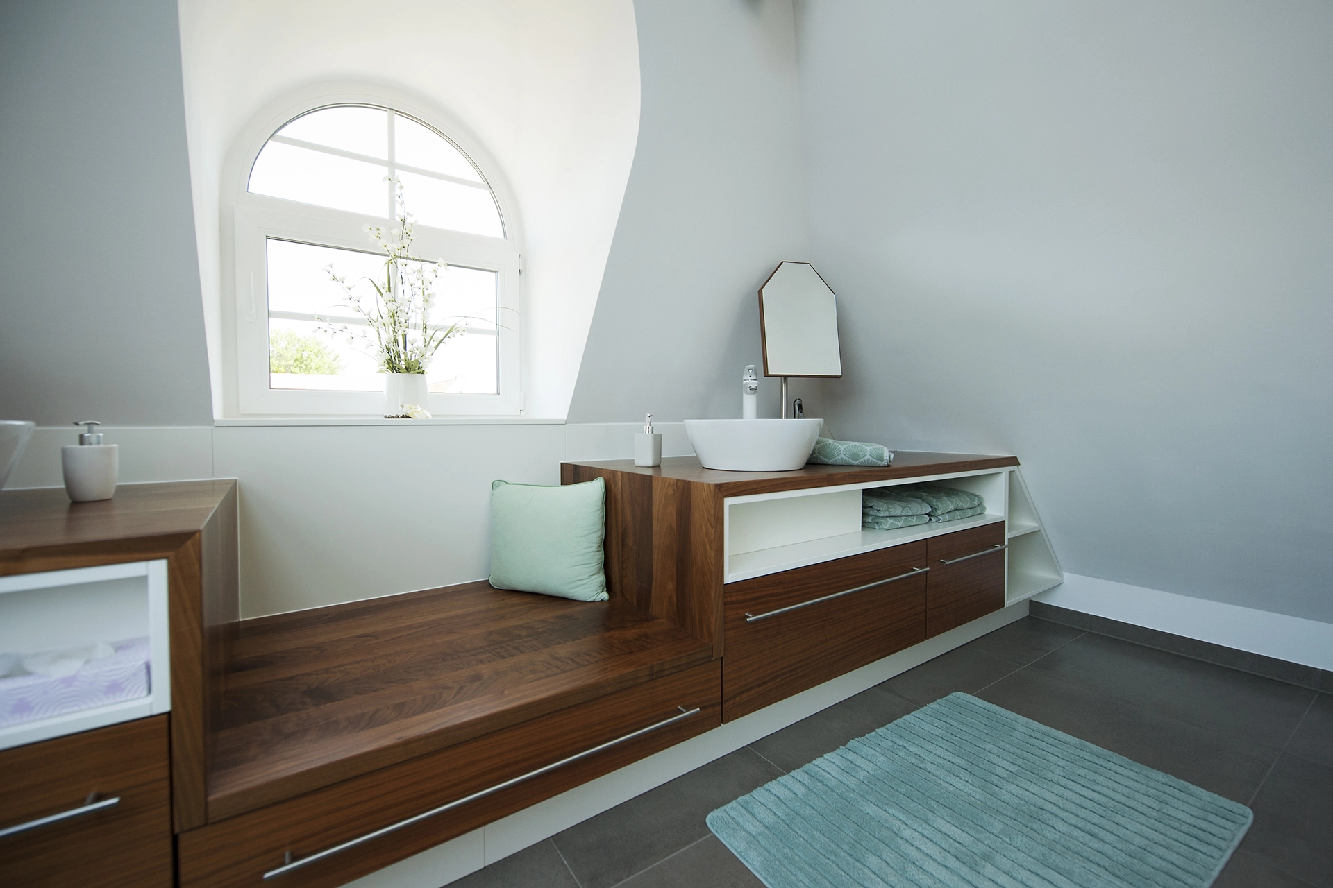 Hier ankommen bedeutet, den Alltag hinter sich zu lassen und die Zeit zu vergessen. Ein hochwertiges Bad ist zeitlos gestaltet und erstklassig in seiner Funktion. Schwebende Möbel geben dem Raum Leichtigkeit. Die Technik im Hintergrund denkt in jedem Moment mit: beim nächtlichen Licht, beim sanften Öffnen und Schließen der Möbel und Türen, bei der Privatsphäre mit Priva-Light-Trennwänden oder beim Infrarot-beheizten Spiegel, der auch bei erhöhter Luftfeuchtigkeit nie mehr beschlägt und wohltuende Wärme spendet. Auch die Sauna folgt all diesen Gedanken. Mit abgeschrägten Kanten, die sich der Körperhaltung anpassen, stimmungsvoll und clever positioniertem Licht und einer exklusiven Kombination aus Infrarot und finnischer Sauna, die sich Ihrem individuellen Wunsch nach Regeneration anpasst.